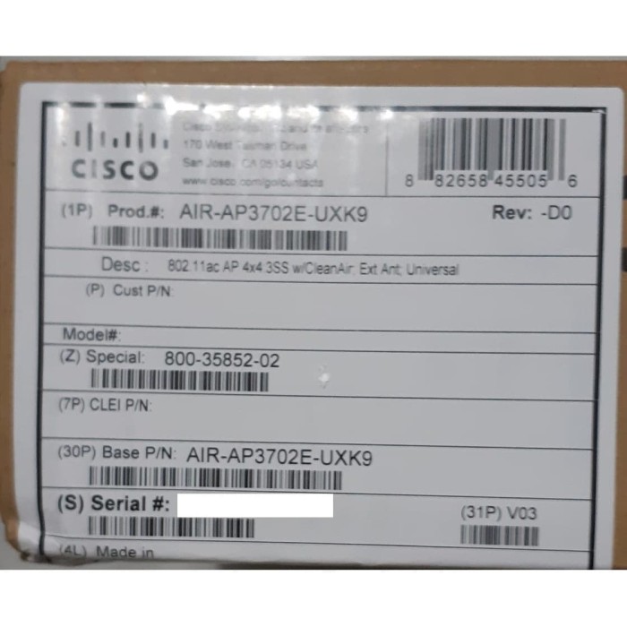 Air ap3702e uxk9 hardware platform pc item weight 0 32 ounces product dimensions 0 5 x 0 5 x 0 5 inches item dimensions lxwxh 0 5 x 0 5 x 0 5 inches color white voltage 240 volts manufacturer cisco systems enterprise asin b00zrw9wj6 is discontinued by manufacturer no date first available july 1 2015.